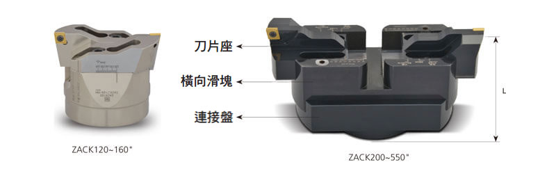 | 型号 | 搪孔范围 | 适用刀杆 | L | 连接盘 | 横向滑块 | 刀片座 | 刀片 |